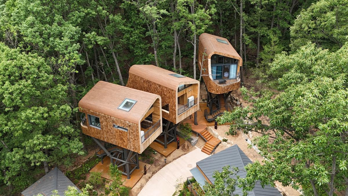 나무 위에 지어진 3동의 4인실.