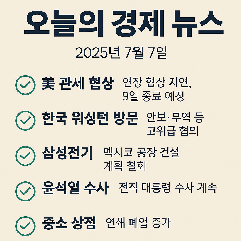 – 한국 무역대표단이 9일 만료 예정인 미국의 관세 유예 연장을 논의 중이나, 주요 쟁점인 자동차·철강 관세 문제에 실질 진전은 아직 부족한 상황입니다 .
