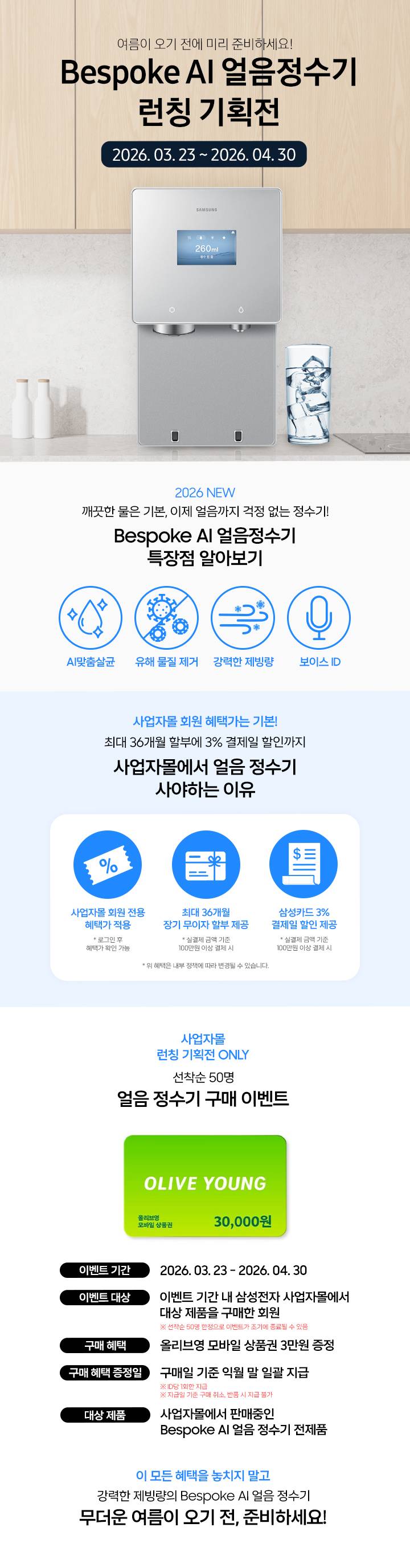 이번 삼성 정수기는 단순히 물을 정수하는 기기를 넘어 AI 기술과 위생 시스템, 얼음 기능까지 결합된 제품입니다.